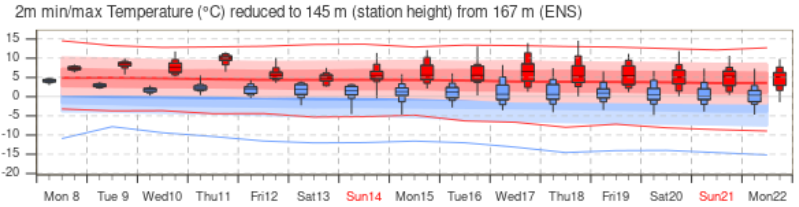 Zmena by mohla byť v tom, že aj v nižších polohách sa očakáva viac slnečných dní a menej hmly. Ako však vidieť na ansámble numerického modelu ECMWF, tak teploty by minimálne až do 20. decembra mali byť nad hranicou dlhodobého normálu.