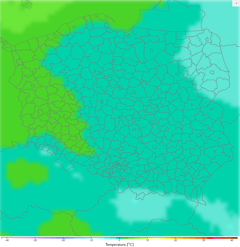 priemerná teplota počas zimy v rokoch 2021-2030 pri scenári RCP4.5, zdroj: klimada2.ios.gov.pl