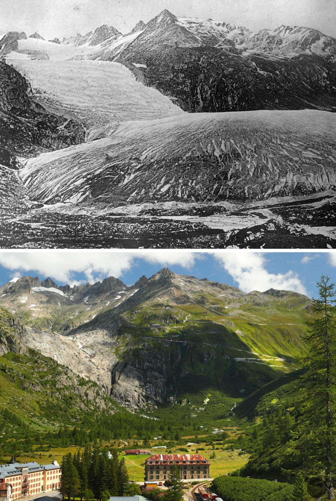 Odborníci z Glaciologickej komisie Švajčiarskej akadémie vied porovnali fotografie z konca 19. storočia s tým súčasnými. Pri nasledujúcich obrázkoch uvidíte úbytok ľadu a ľadovcov za posledných 130 rokov.