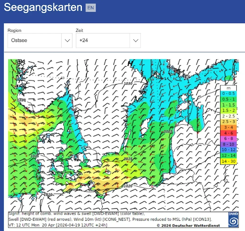Situáciu komplikovali aj prírodné podmienky. Silný vietor v oblasti Wismarskej zátoky dosahoval rýchlosť až 70 km/h a menil správanie vĺn.