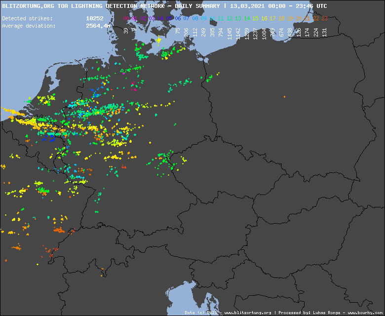 Búrky sa v strednej Európe vyskytovali už počas včerajšieho dňa, kedy sa v oblasti Nemecka, Francúzska a v oblasti Beneluxu vyskytovala intenzívna blesková aktivita.