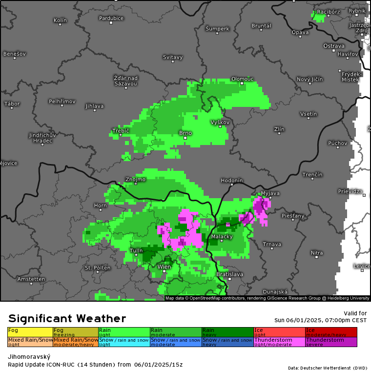 Vlna búrok a dažďa z Rakúska by sa mala v najbližších minútach dostať aj nad západné Slovensko. Nowcastingové modely rátajú s búrkami predovšetkým na Záhorí. Po búrkach bude nasledovať pole výdatného dažďa, ktoré sa bude presúvať Záhorím a severnou časťou Podunajskej nížiny smerom k severozápadnému Slovensku.