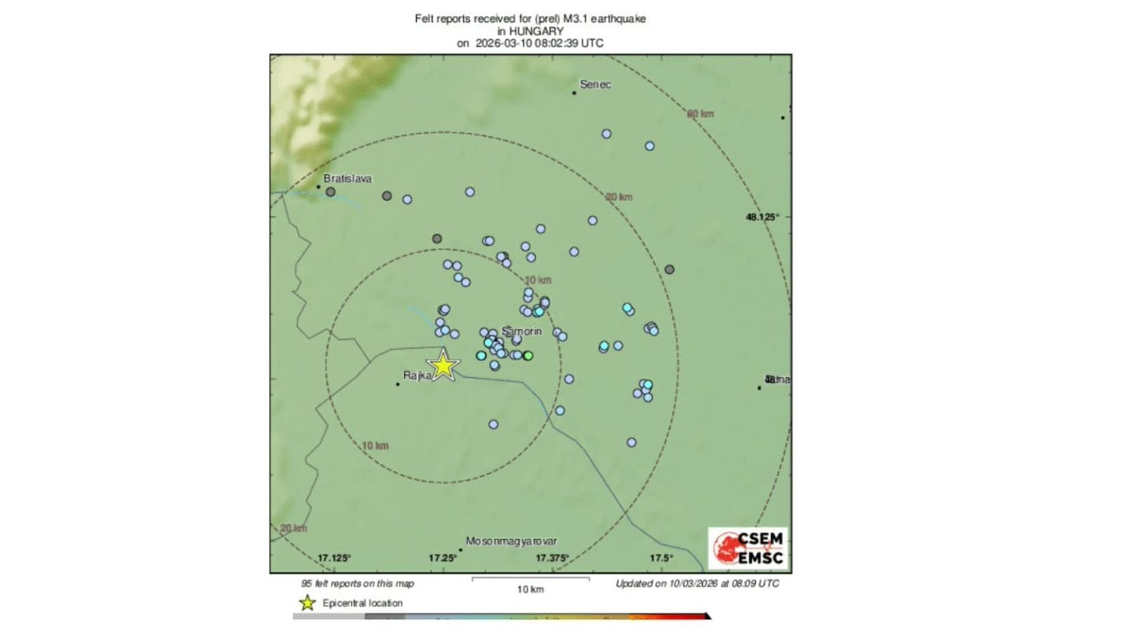 Epicentrum sa predbežne odhaduje na okolie Rajky v Maďarsku, tesne za našimi hranicami.
