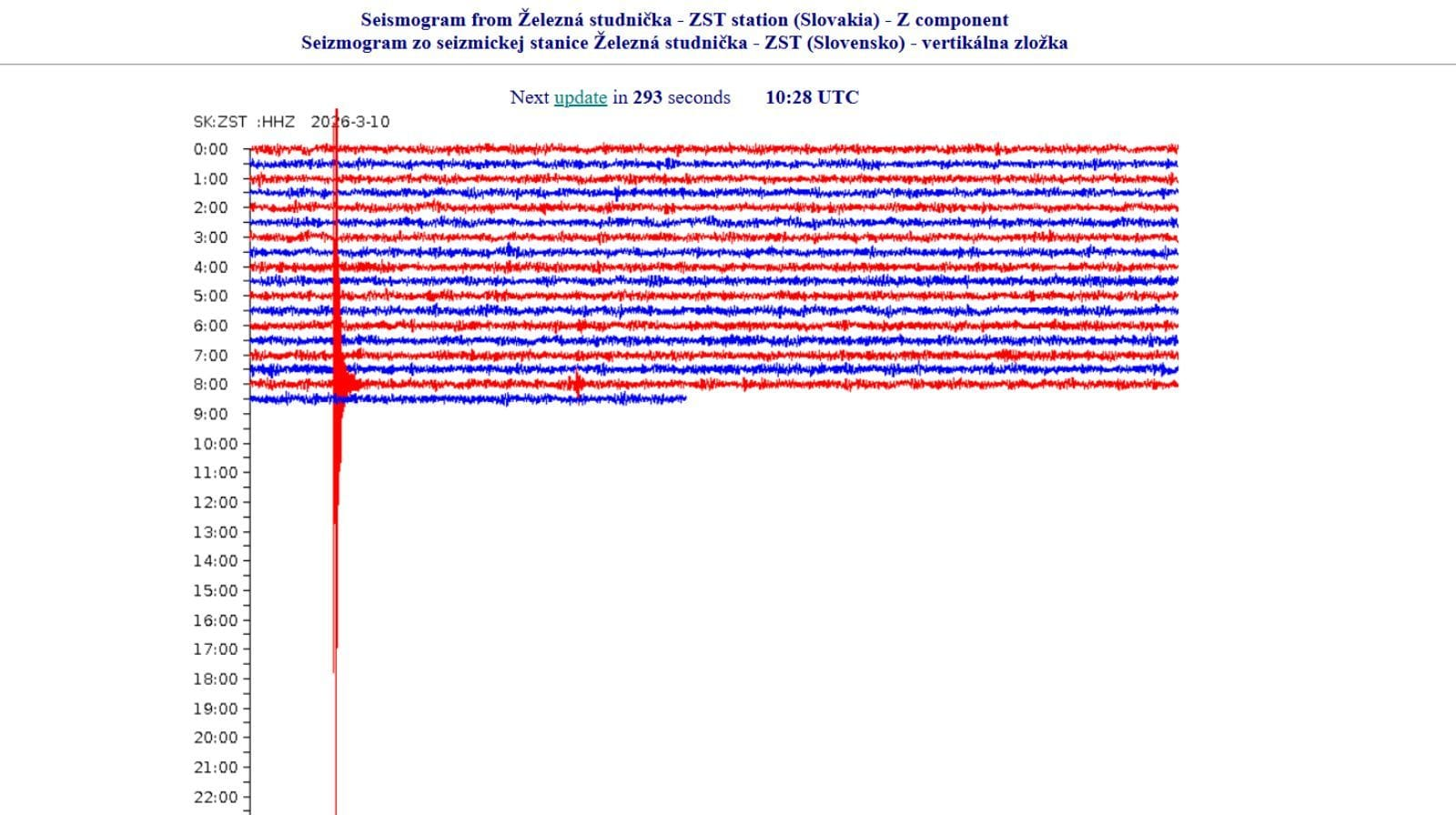 Tentokrát seizmografy zaznamenali zemetrasenie s magnitúdom 3,1 o 9:02 hodine nášho času, s hĺbkou 10 km.