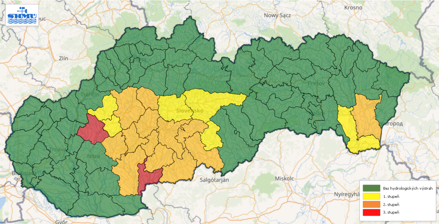 SHMÚ aktualizovalo hydrologické výstrahy na Slovensku. Platia nasledovne: