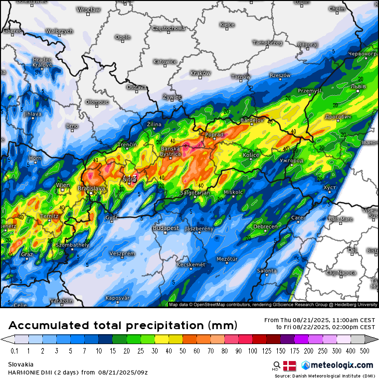 Večer a v noci sa nad naše územie doženie ďalšia vlna dažďa, ktorá bude ešte intenzívnejšia. Podľa aktuálnych predpovedí by mohlo spadnúť od tejto chvíle až do piatkového popoludnia ďalších až 50 mm.