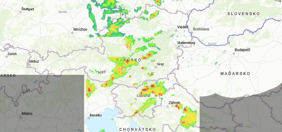 Aktuálne dochádza ku tvorbe búrok v oblasti Rakúska a Slovinska, čo vidieť aj na aktuálnom radarovom zábere.
