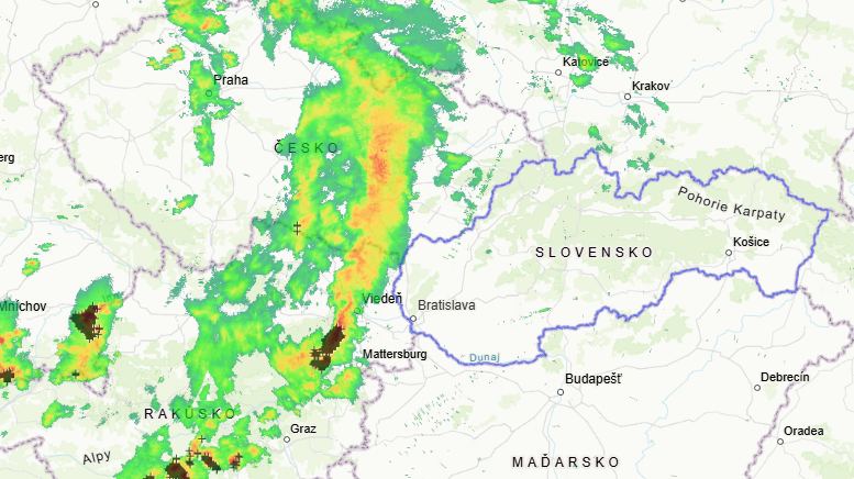 Hlavná búrková línia sa však pravdepodobne presunie z Rakúska do Maďarska, a Slovensko tak zasiahne len okrajovo.
