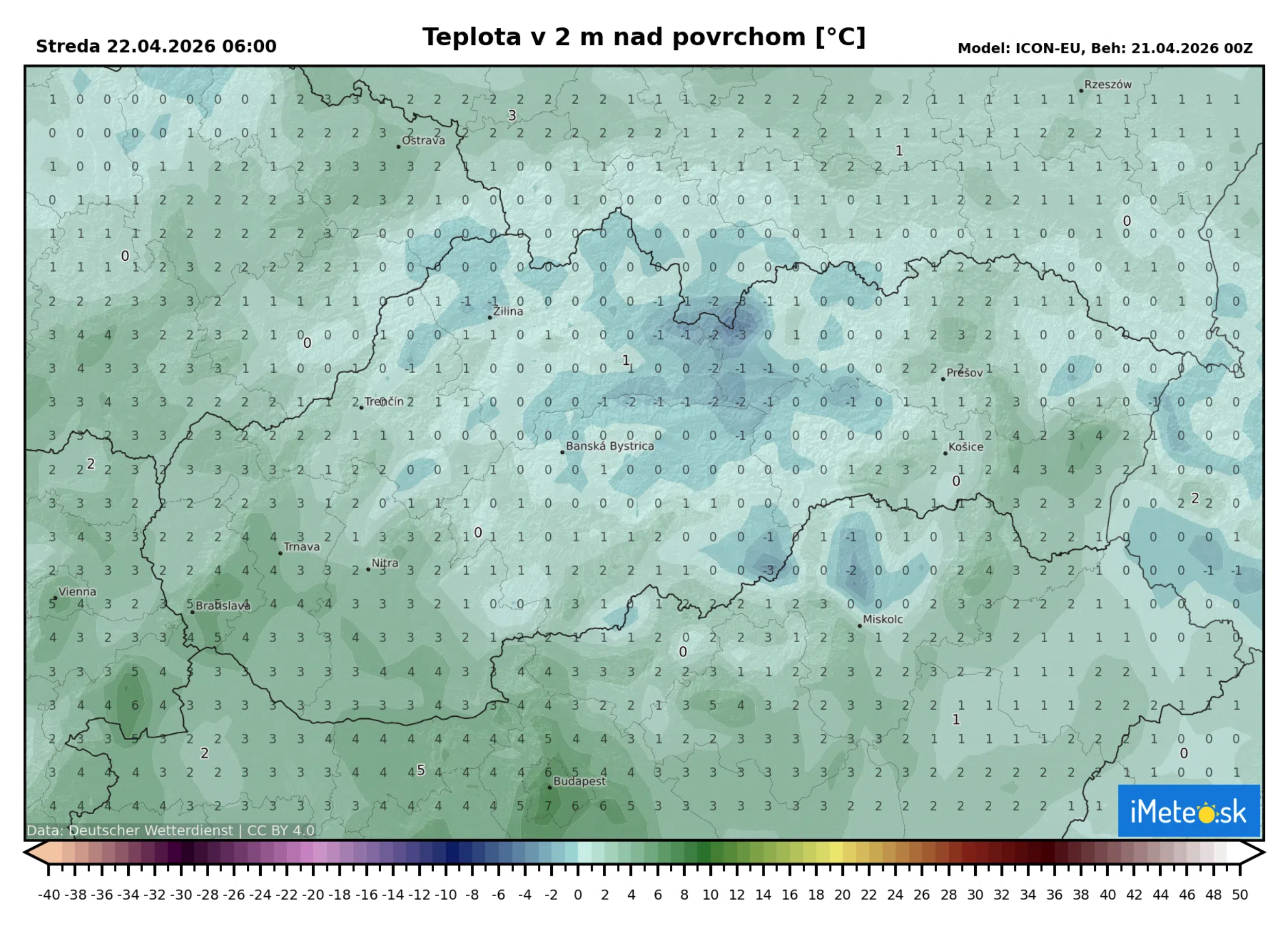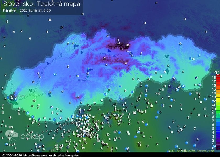 Tento chladný kontinentálny vzduch so sebou prináša výrazne podpriemerné teploty, ktoré budú v poslednej aprílovej dekáde až o 5 °C nižšie, než je dlhodobý priemer, a sneženie na severe tak dopĺňa mrazivý charakter aktuálneho počasia.
