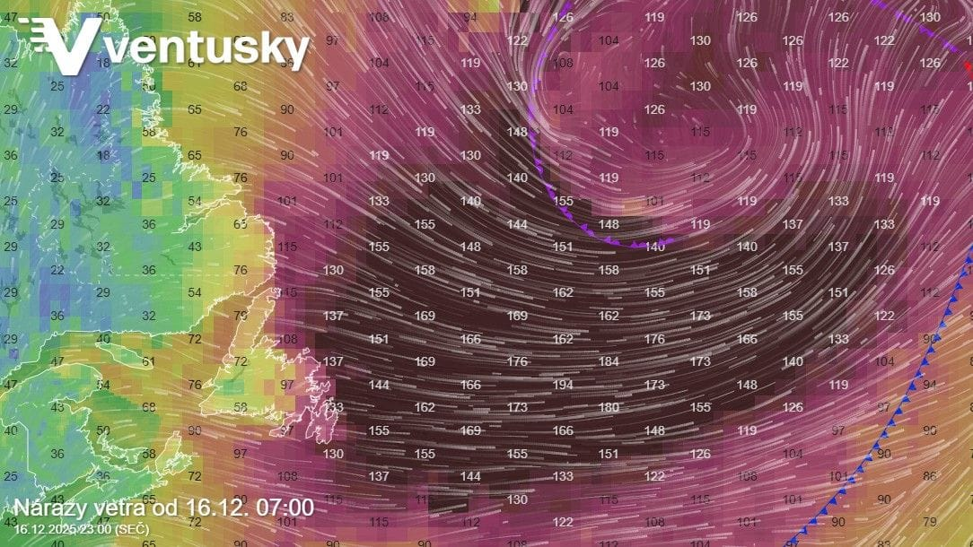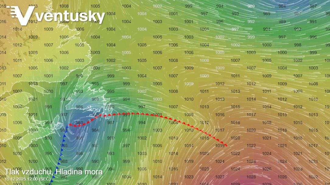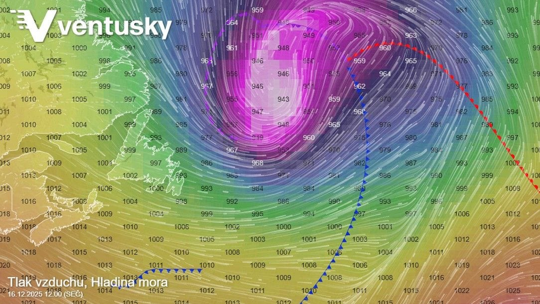 Tlak by v strede tlakovej níže mohol ešte o čosi klesnúť aj pod 940 hPa. To sú čísla, ktoré sa bežne spájajú skôr s hurikánmi než s „obyčajnými“ búrkami v miernych šírkach.