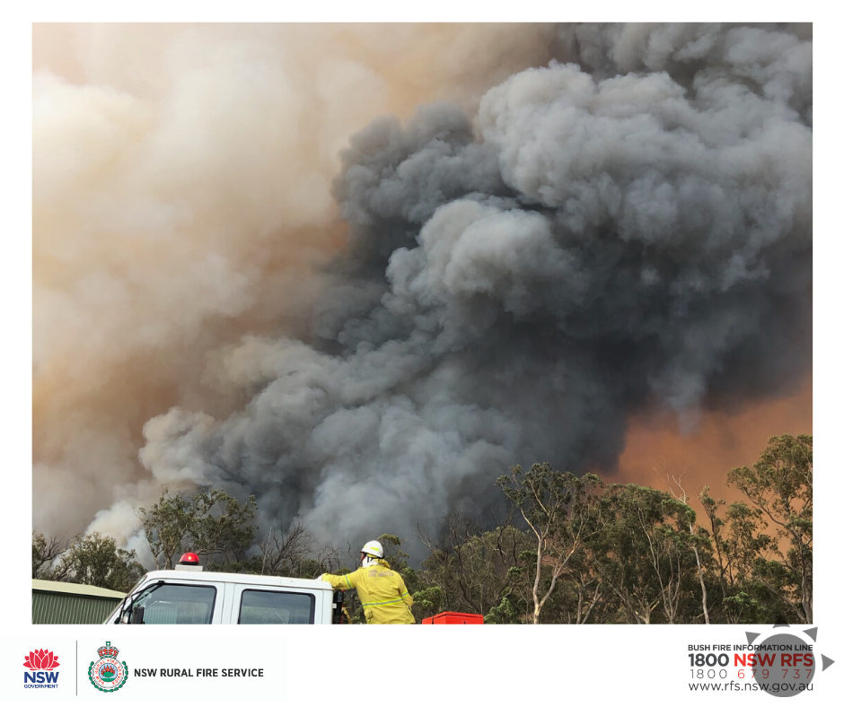 V sobotu varovala vidiecka požiarna služba z južného Walesu (RFS), že na pobreží vznikla búrka vyvolaná ohňom približne 287 km južne od Sydney.