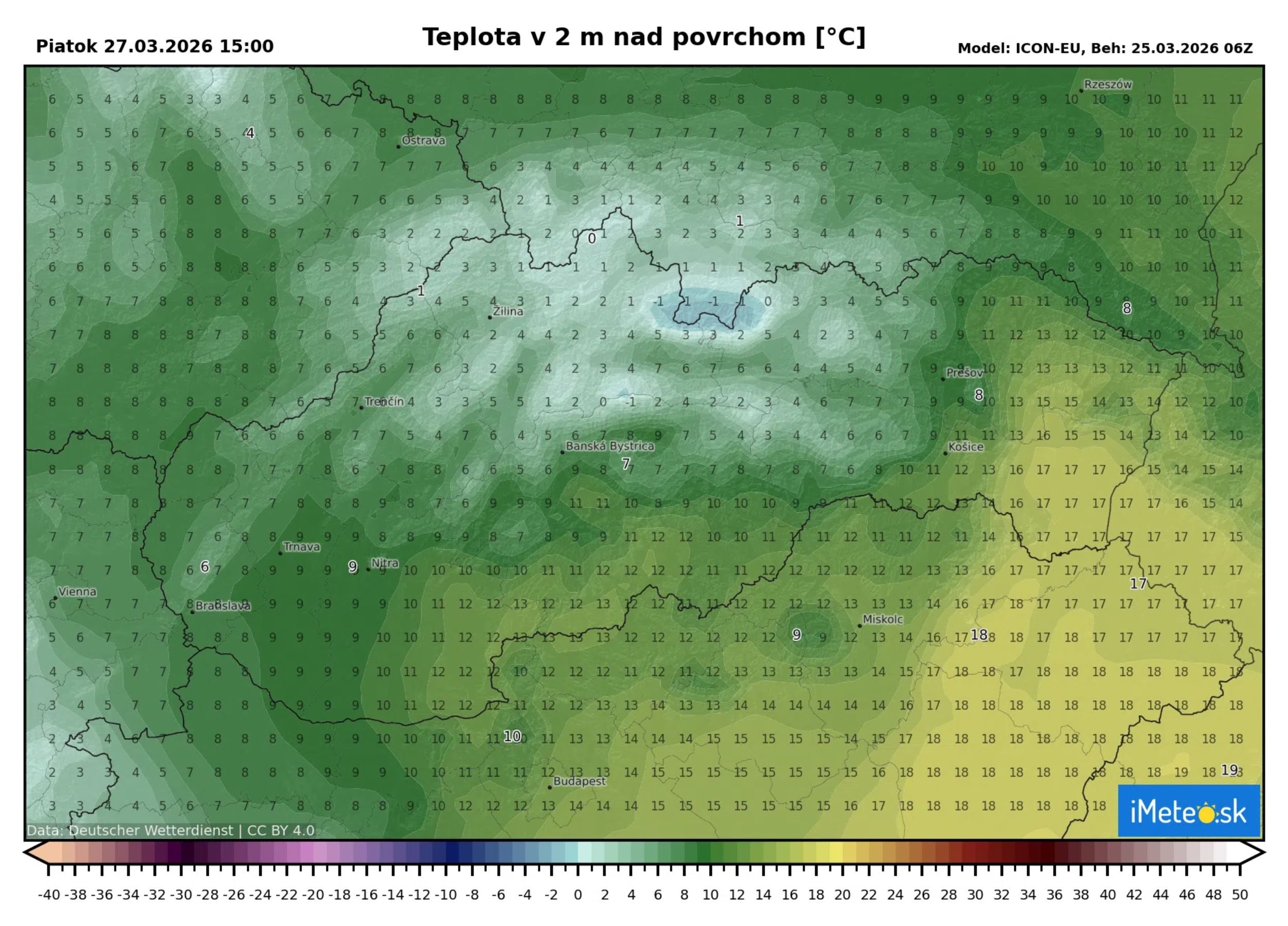 V ostrom kontraste k tomuto mrazivému scenáru si Košice a východ republiky stále užívajú takmer idylickú jar s teplotami vystupujúcimi až k +16 °C, čo vytvára na našom malom území výrazný teplotný rozdiel viac ako 12 °C.