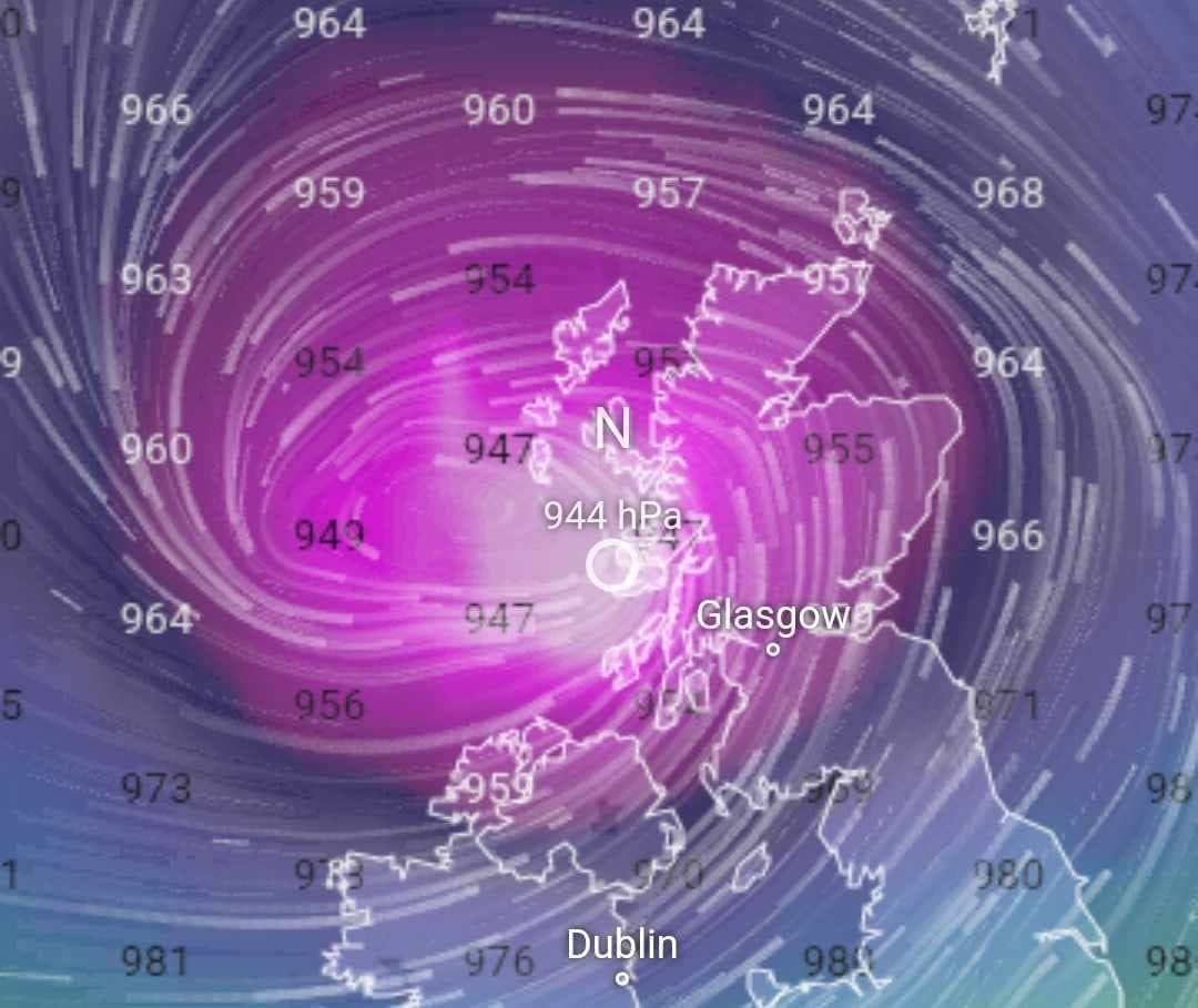 Met Éireann uviedol, že bóje M6 zaznamenala počas posledných 10 hodín pokles tlaku o 49 hPa, čo je viac ako dvojnásobok kritéria pre tzv. bombovú cyklónu (pokles tlaku o 24 hPa počas 24 hodín).