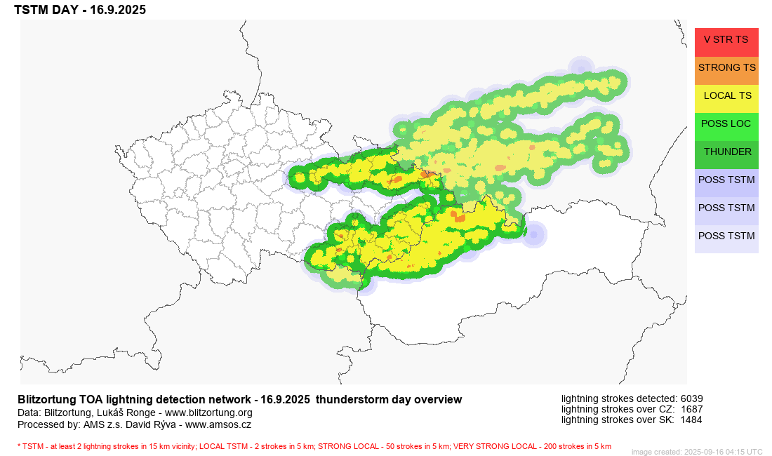 Udrelo takmer 1 500 bleskov a búrkam sa naďalej darí na severe v oblasti Tatier. Búrky však už nebudú mať dlhú životnosť a začnú postupne zanikať.