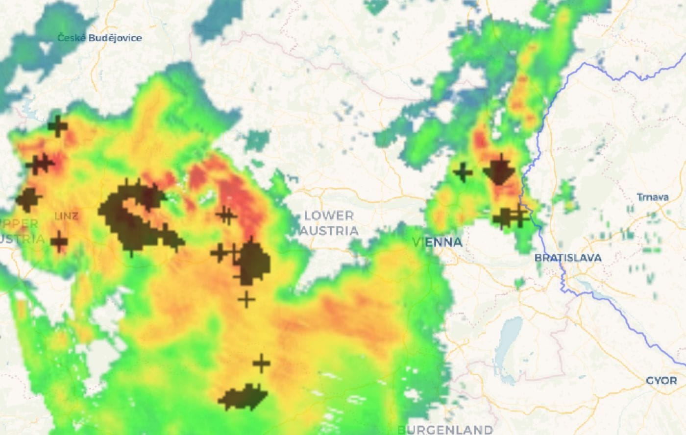 Každú chvíľu však západ Slovenska (predovšetkým Záhorie) zasiahnu búrky z Rakúska, ktoré sa už rútia naším smerom.