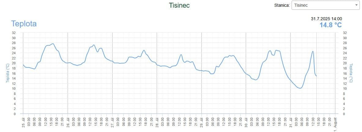 Na východ Slovenska dnes dorazilo búrlivé počasie, ktoré okrem bleskovej aktivity prinieslo aj prudké ochladenie. Teploty sa v priebehu niekoľkých desiatok minút prepadli o viac ako 10 °C.