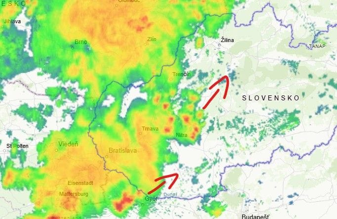 Aktuálne máme búrky predovšetkým na Hornom Ponitrí a čiastočne aj na Považí. Pred nimi silnie vietor, ktorý dosahuje nárazy 60 až 70 km/h. Súčasne sa nám z Maďarska blíži od juhozápadu ďalšia vlna búrok, ktorá dorazí do oblasti Veľkého Medera.