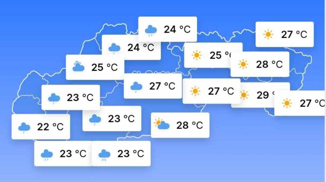 Zatiaľ čo včera nás sužovali extrémne horúčavy, ktoré na mnohých miestach prevyšovali +35 °C, dnešné teploty by sa nemali vyšplhať nad +33 °C.