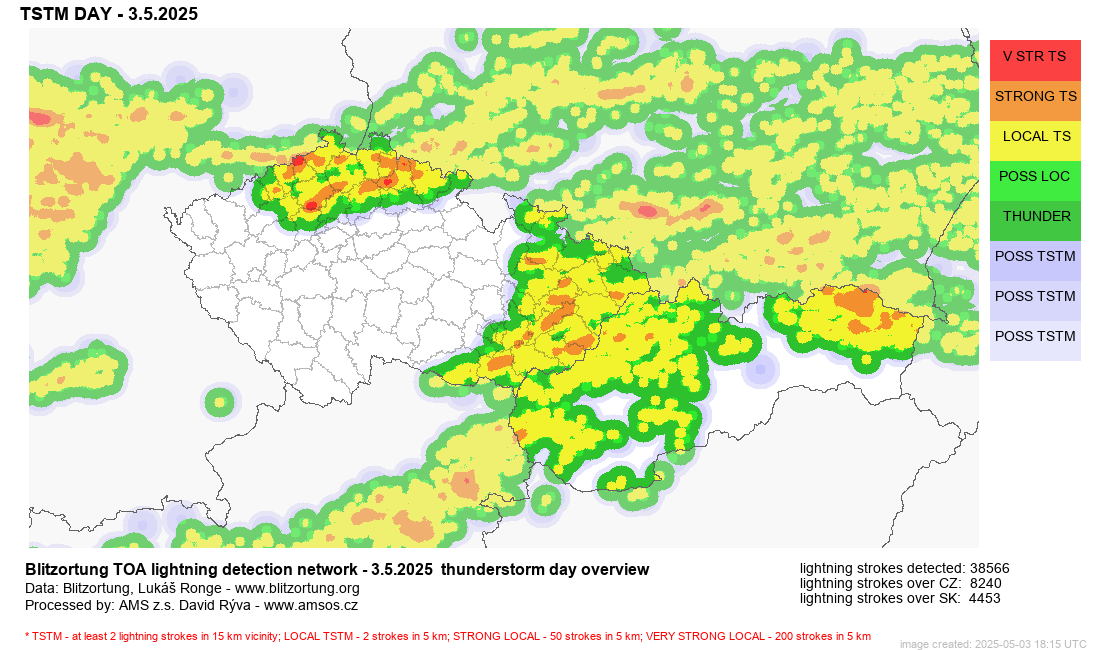 Búrky sa ešte stále nachádzajú na severe východného Slovenska a línia búrok, ktoré k nám prišli od našich susedov z Rakúska sa aktuálne nachádza na strednom Slovensku. Mimoriadne búrlivo je v Česku a Nemecku. Na našom území už dnes udrelo vyše 4 000 bleskov.