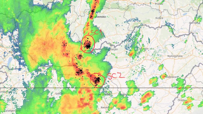 Na hraniciach s Maďarskom v okolí Budapešti zúria búrky, ktoré sa organizujú do systémov a vytvárajú supercely.