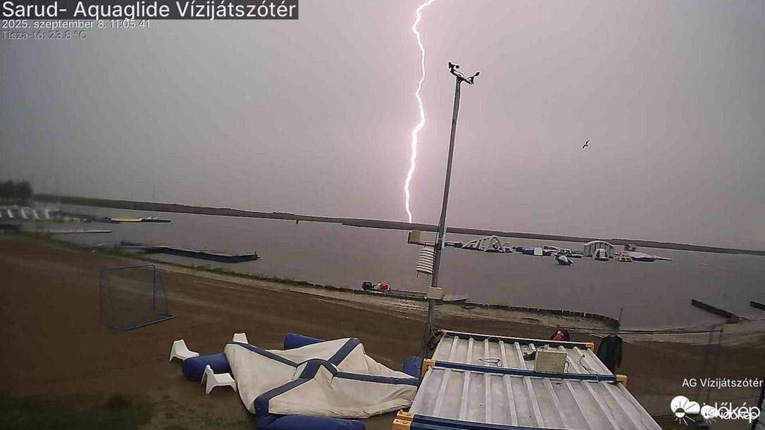 Búrkový systém priniesol aj veľmi výraznú bleskovú aktivitu. Kamery pri Tisza-tó zachytili niekoľko silných výbojov, ktoré osvetľovali celé okolie.