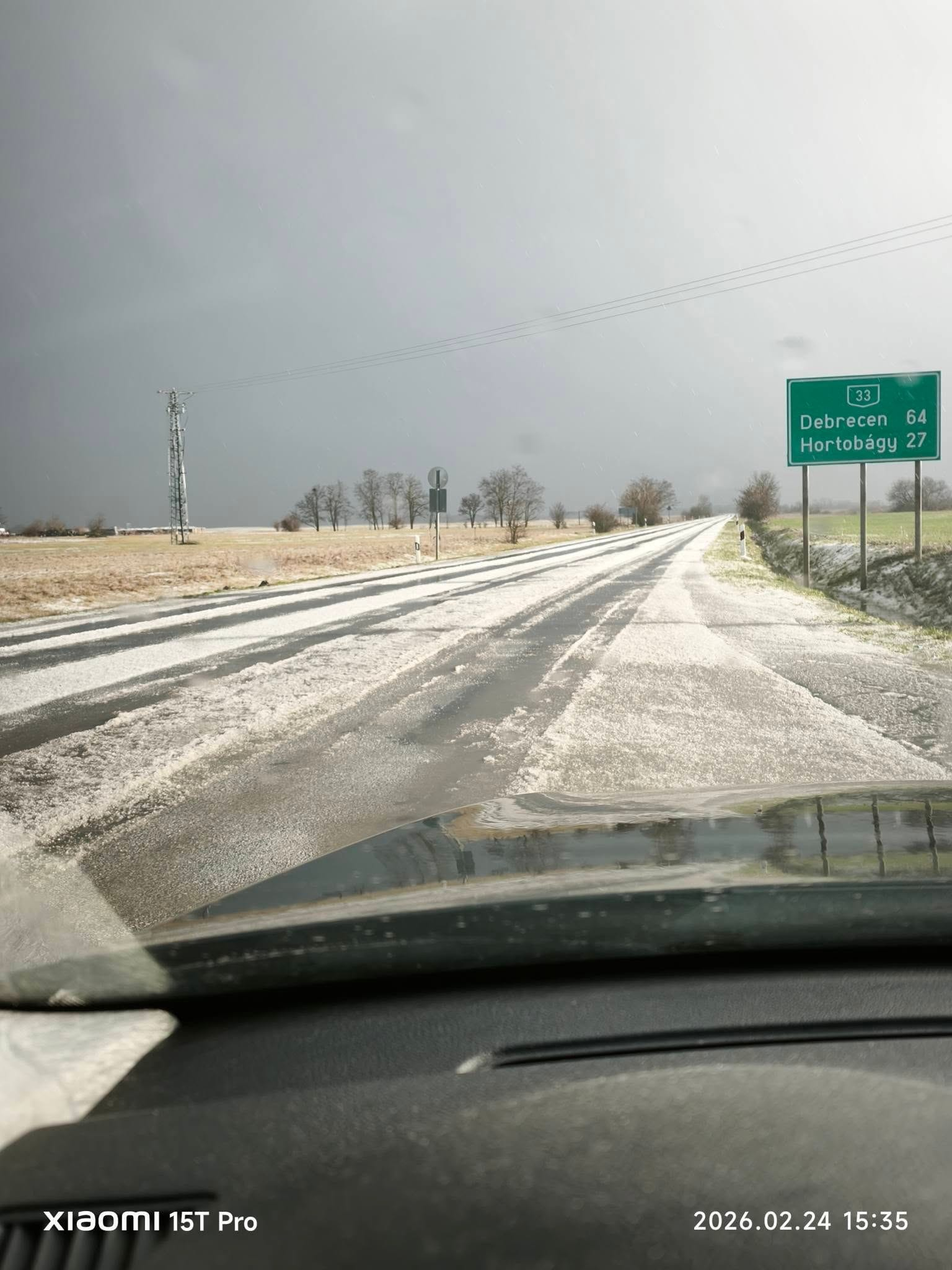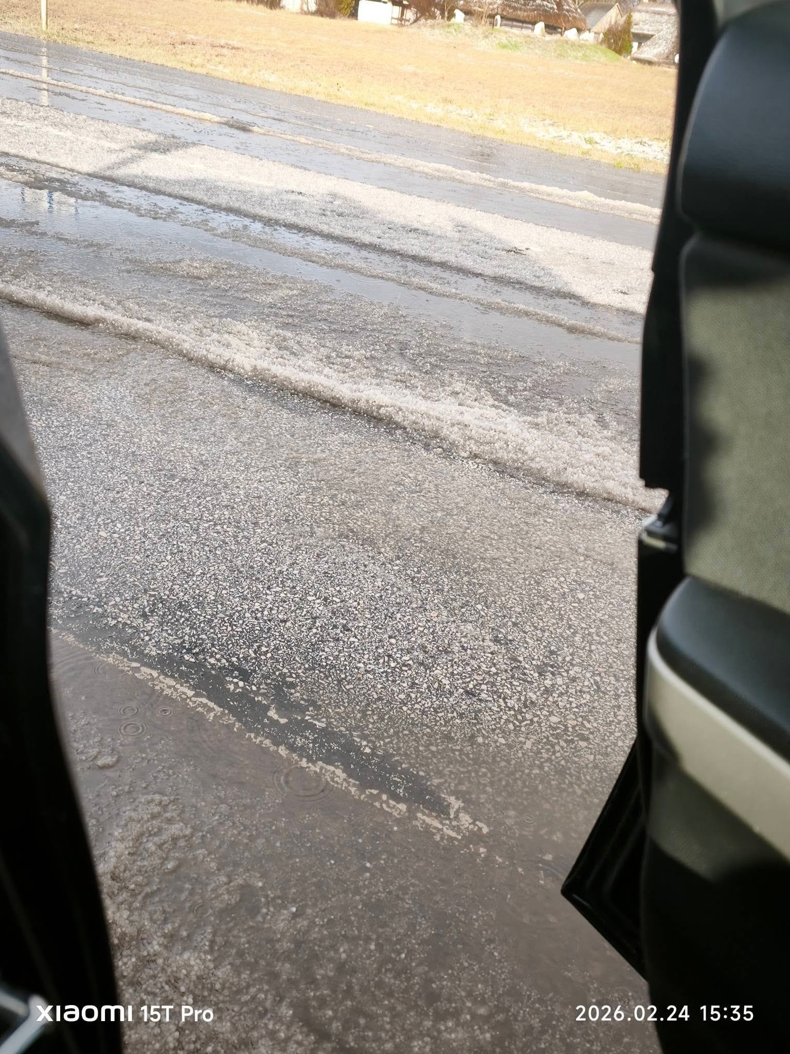 Výrazné krupobitie bolo zaznamenané aj neďaleko mesta Tiszafüred, kde krátko po prechode búrky padali krúpy na 33. hlavnej ceste. Vodiči tam čelili náhlemu zhoršeniu podmienok a komunikácie zostali pokryté vrstvou ľadu. Podľa dostupných dát udrelo už viac ako 300 bleskov.