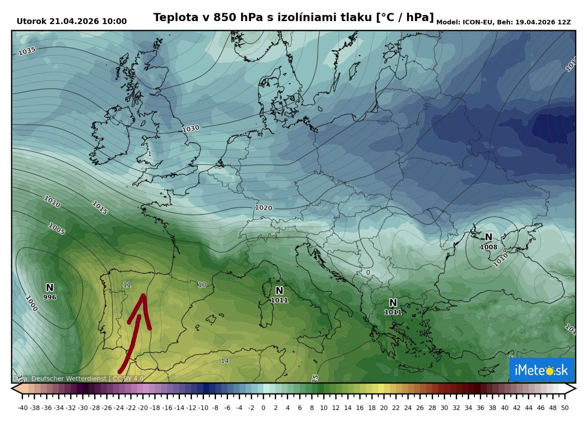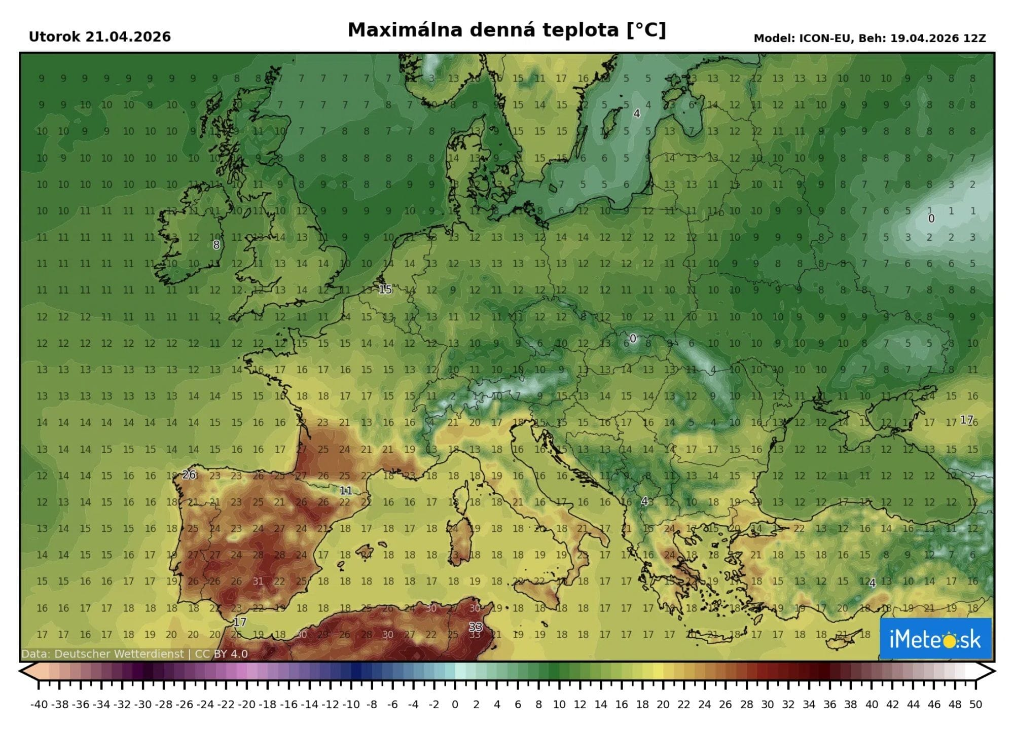 Do časti Európy dnes dorazia pomerne výrazné horúčavy, ktoré nie sú na polovicu apríla bežné. V centrálnej časti Európy, vrátane nášho územia, však bude pokračovať chladnejšie počasie, ktoré sa v nadchádzajúcich dňoch ešte viac zvýrazní.