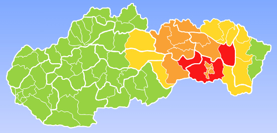 To sa týka okresov Gelnica, Košice-okolie a Vranov nad Topľou. V týchto oblastiach môže byť snehová fujavica taká silná, že osoby a vozidlá môžu stratiť orientáciu a sneh môže zasypať cesty, ktoré sa môžu pod vrstvou snehu stratiť.