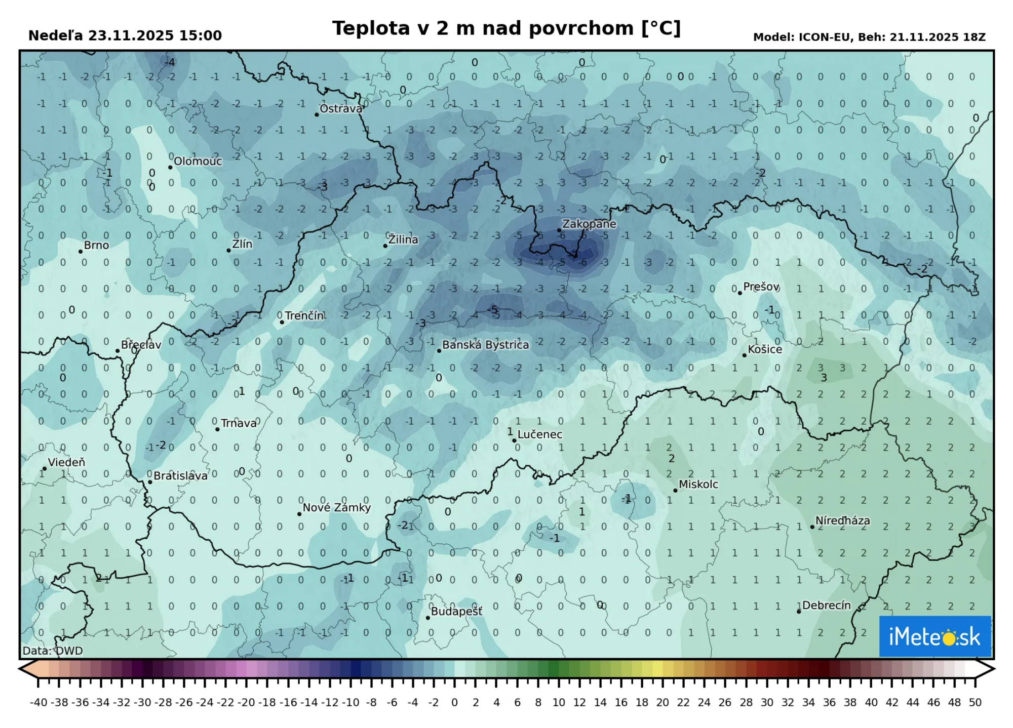 Keďže teploty budú padať počas dňa pod nulu, tak snehová pokrývka sa začne vytvárať aj v mestách a v obciach na západnom Slovensku, kde sa vytvorí od poprašku do 5 cm.