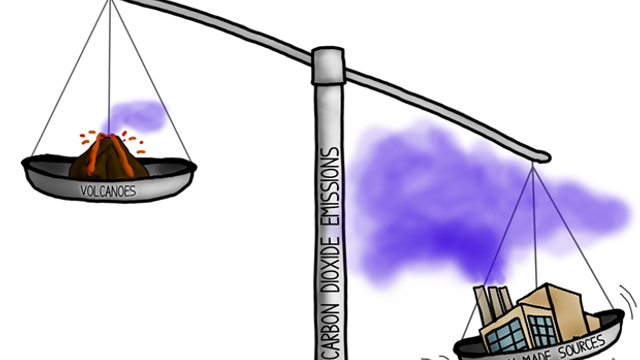 Jedna veľká erupcia sopky sa vyrovná ľudským emisiám vyprodukovaným v priebehu niekoľkých hodín a je príliš pominuteľná na to, aby sa vyrovnala ich dôsledkom.