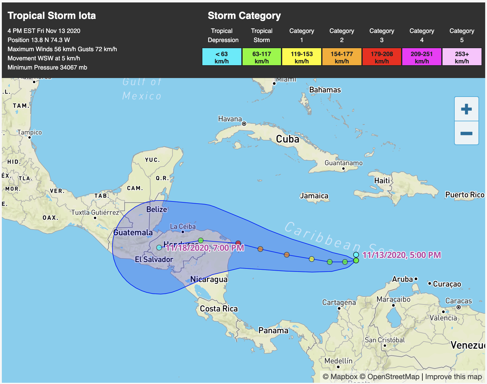 Ani takmer v polovici novembra sezóna ešte neskončila. V Krabiskom mori sa sformovala 30. búrka tohtoročnej sezóny a dostala meno Iota. Postupne by mala zasiahnuť Nikaraguu a ešte predtým, ako dorazí nad pevninu, by mala dosiahnuť úroveň hurikánu aspoň 3. stupňa.