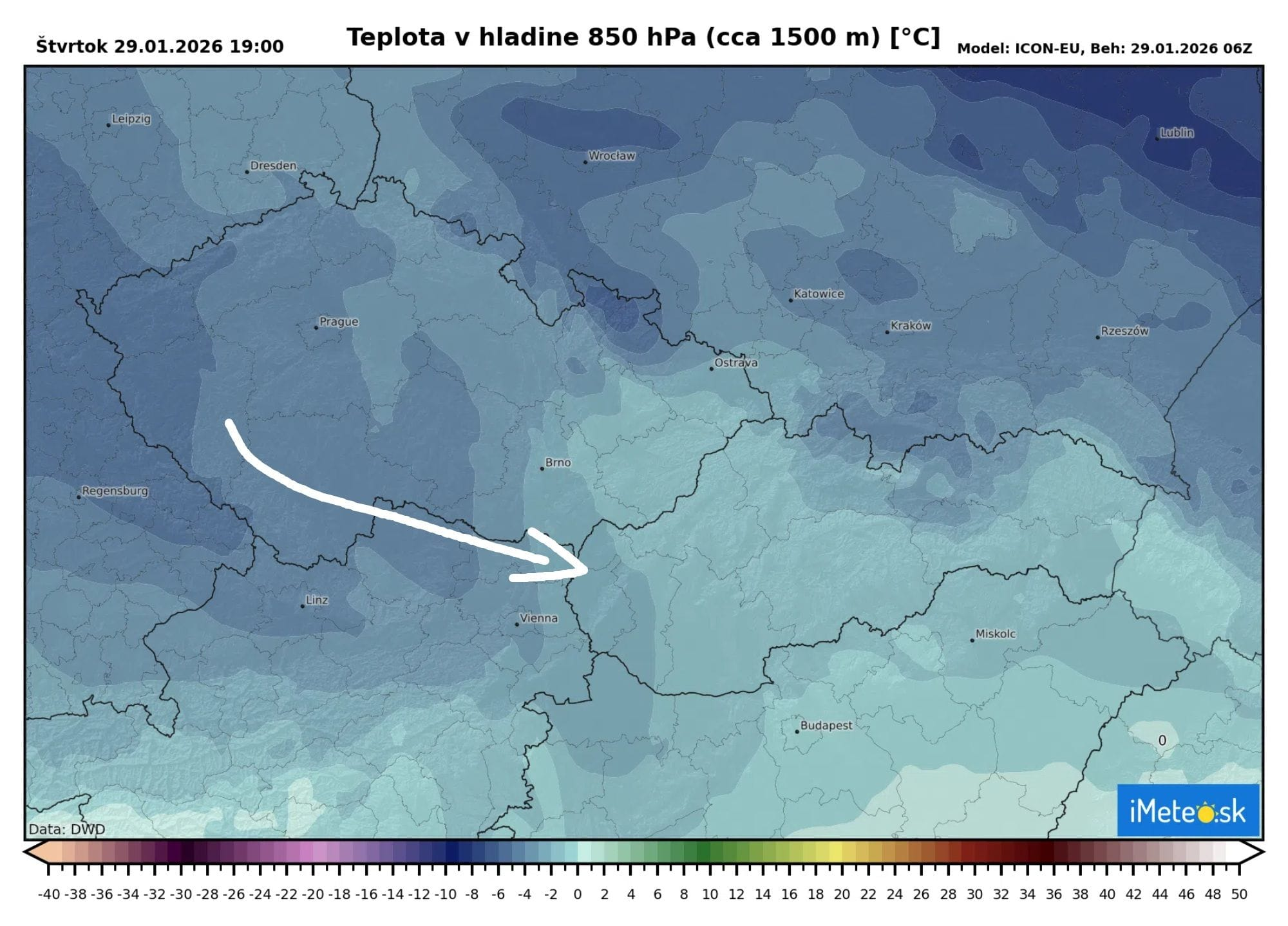 Studený vzduch natečie aj nad Viedenskú panvu a dostane sa aj nad celé Záhorie, teda na západnú stranu Karpát.