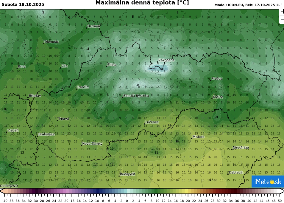 V nočných hodinách nad naše územie natiekla od severu chladnejšia vzduchová hmota, ktorá priniesla ďalšie ochladenie. Maximálne denné teploty tak dnes budú veľmi nízko a pohybovať sa budú len v intervale od +8 do +13 °C, avšak v severných regiónoch Slovenska bude len okolo +5 °C.