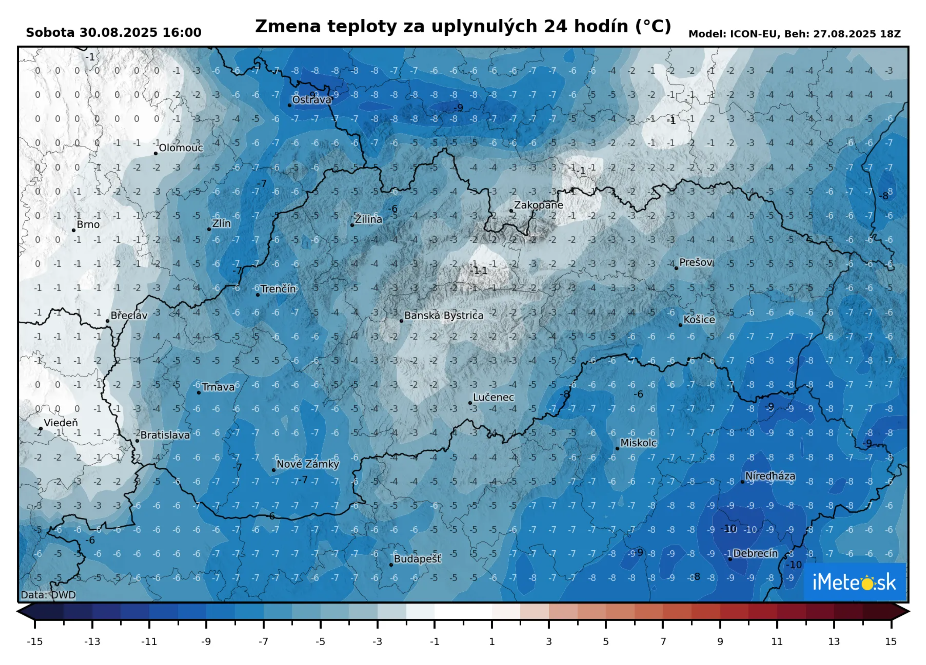 V sobotu tak teploty v priebehu 24 hodín klesnú v porovnaní s piatkom o 5 až 7 °C.