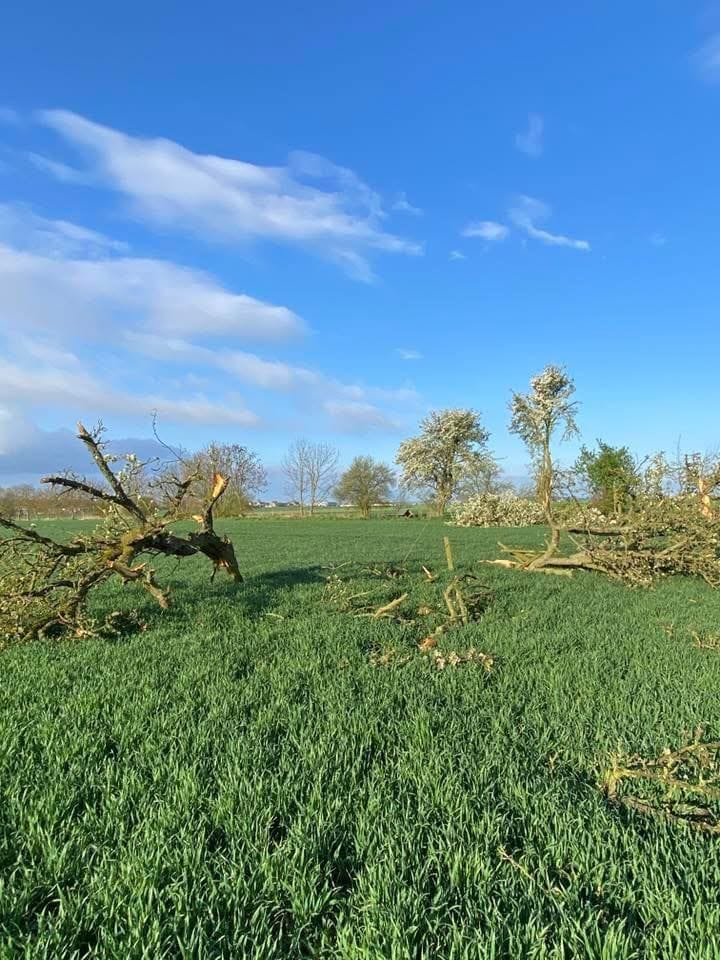 Tornádo medzi obcami Dvorce a Studeňany odnášalo trávu a vyvrátilo niekoľko stromov.