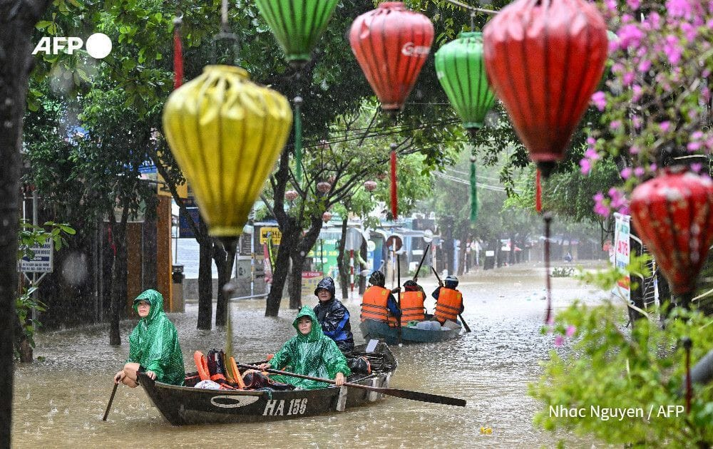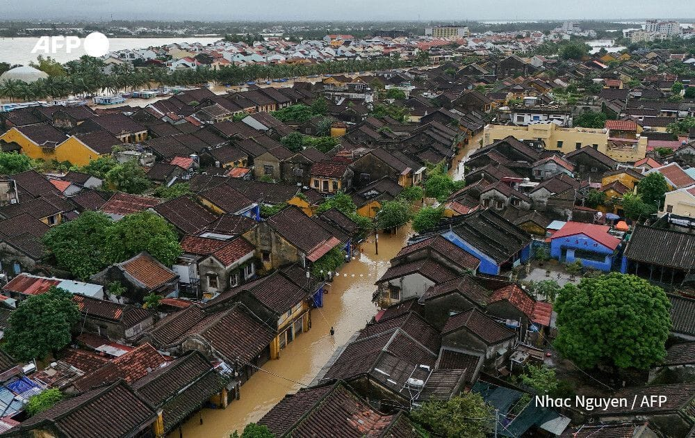 V Hội An, slávnom mieste svetového dedičstva UNESCO, historické uličky zmizli pod riekou vody a bahna. Bicykle nahradili lode a drevené koly sa stali jediným spôsobom, ako prejsť cez centrum mesta.