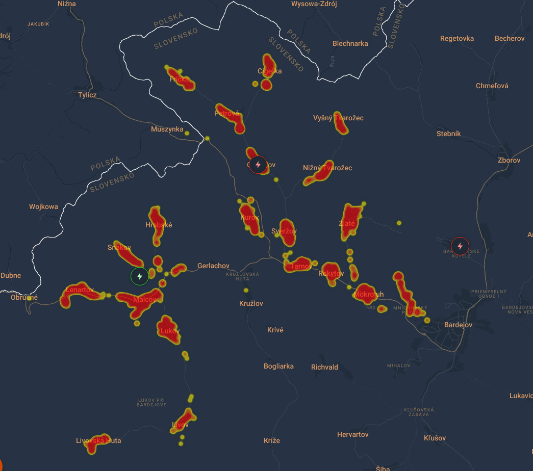 Najrozsiahlejšie výpadky elektriny majú obce v okolí Bardejova a to predovšetkým: Livovská Huta, Livov, Lenartov, Malcov, Lukov, Hrabské, Snakov, Frička, Cigeľk, Petrová, Nižný Tvarožec, Vyšný Tvarožec, Gaboltov, Zlaté, Tarnov, Rokytov, Mokroluh a časť Bardejova.