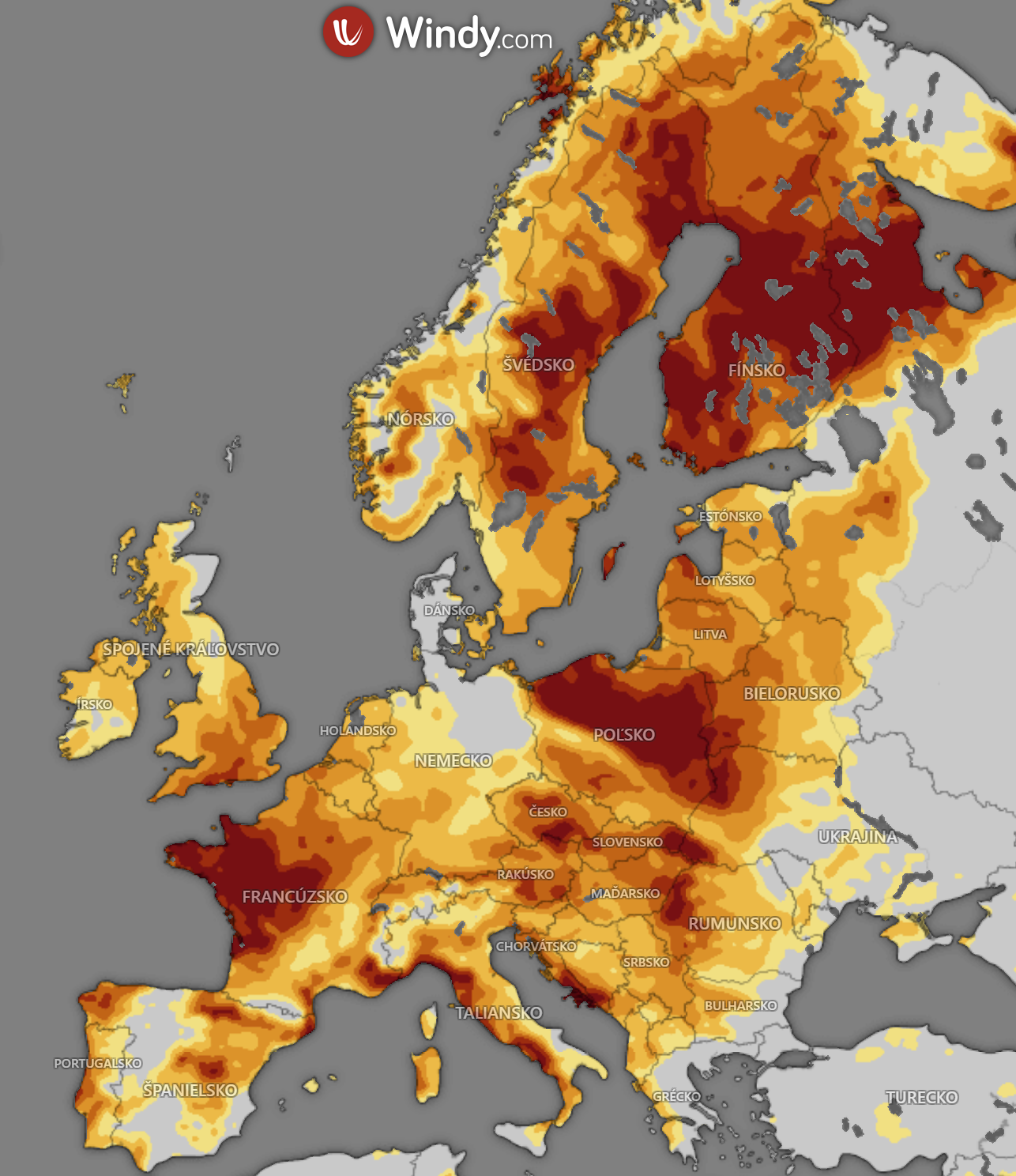 Jednoznačne najkritickejšia situácia je vo Fínsku, vo Švédsku, v západnom Francúzsku a v Poľsku, kde panuje extrémne sucho. Poľsko a Francúzsko pritom patria medzi kľúčové poľnohospodárske regióny Európy, čo môže mať zásadný vplyv na produkciu potravín a následne aj na ceny.