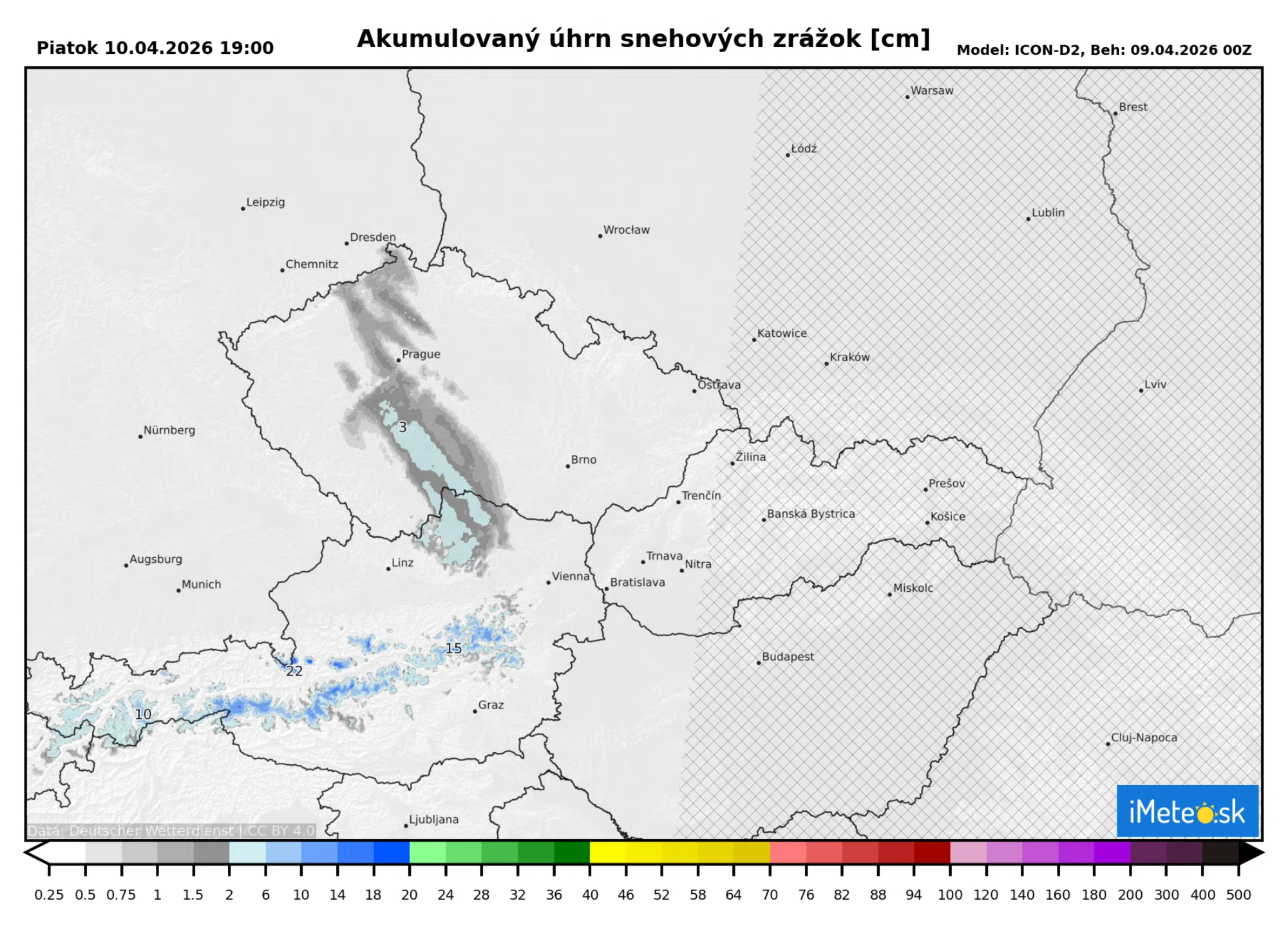 Podľa predpovedných modelov sa sneženie môže objaviť najmä na severe Nemecka, v Alpách a v niektorých častiach západného Česka, kde môže napadnúť od poprašku do približne 3 cm snehu.