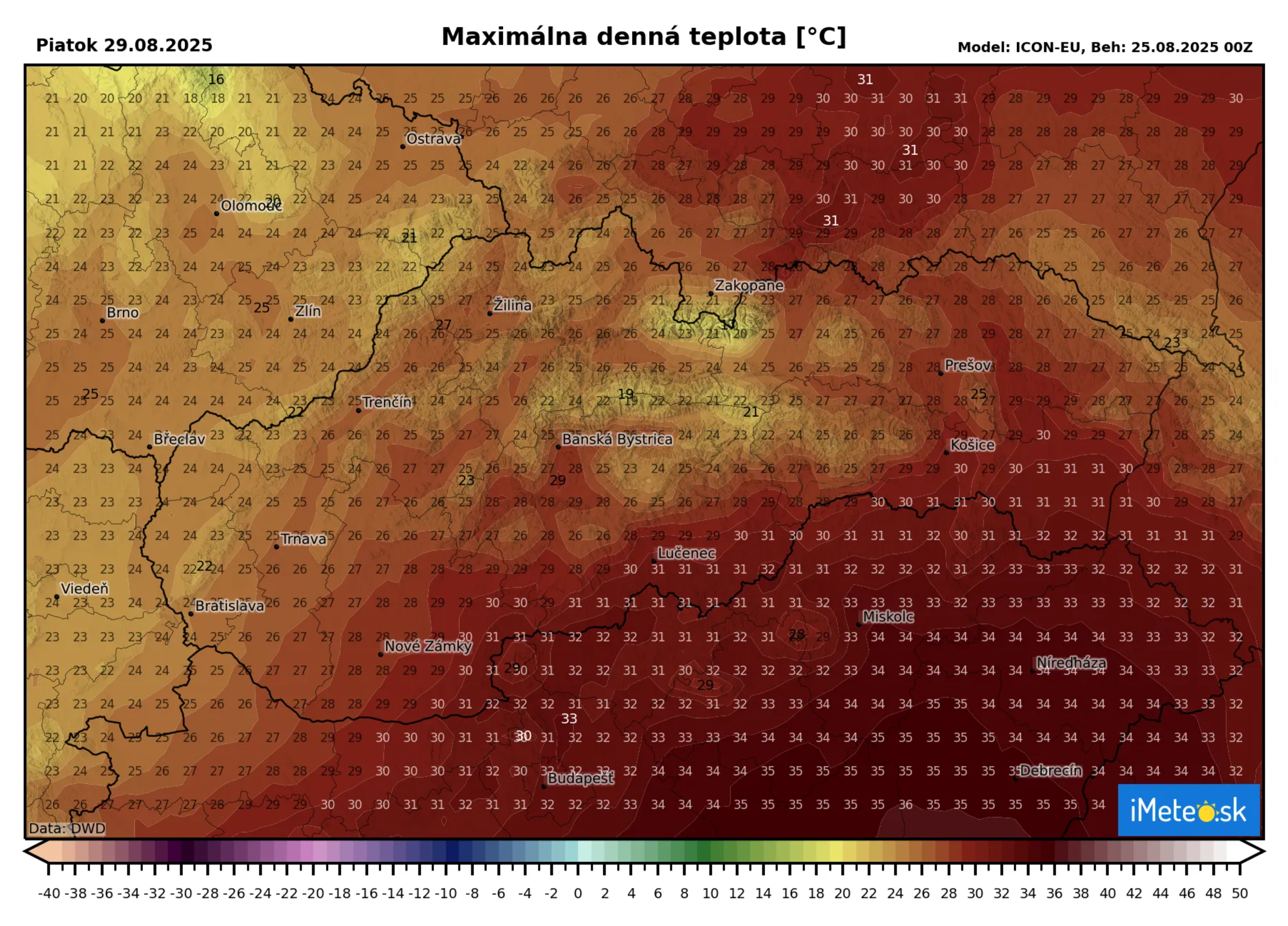 Horúčavy zotrvajú do víkendu, kedy nad naše územie postúpi studený front od západu. To môžeme vidieť aj na mapách – zatiaľ čo v piatok budú ešte teploty nad +30 °C pretrvávať vo východnej časti nášho územia, zo západu sa už začne ochladzovať.