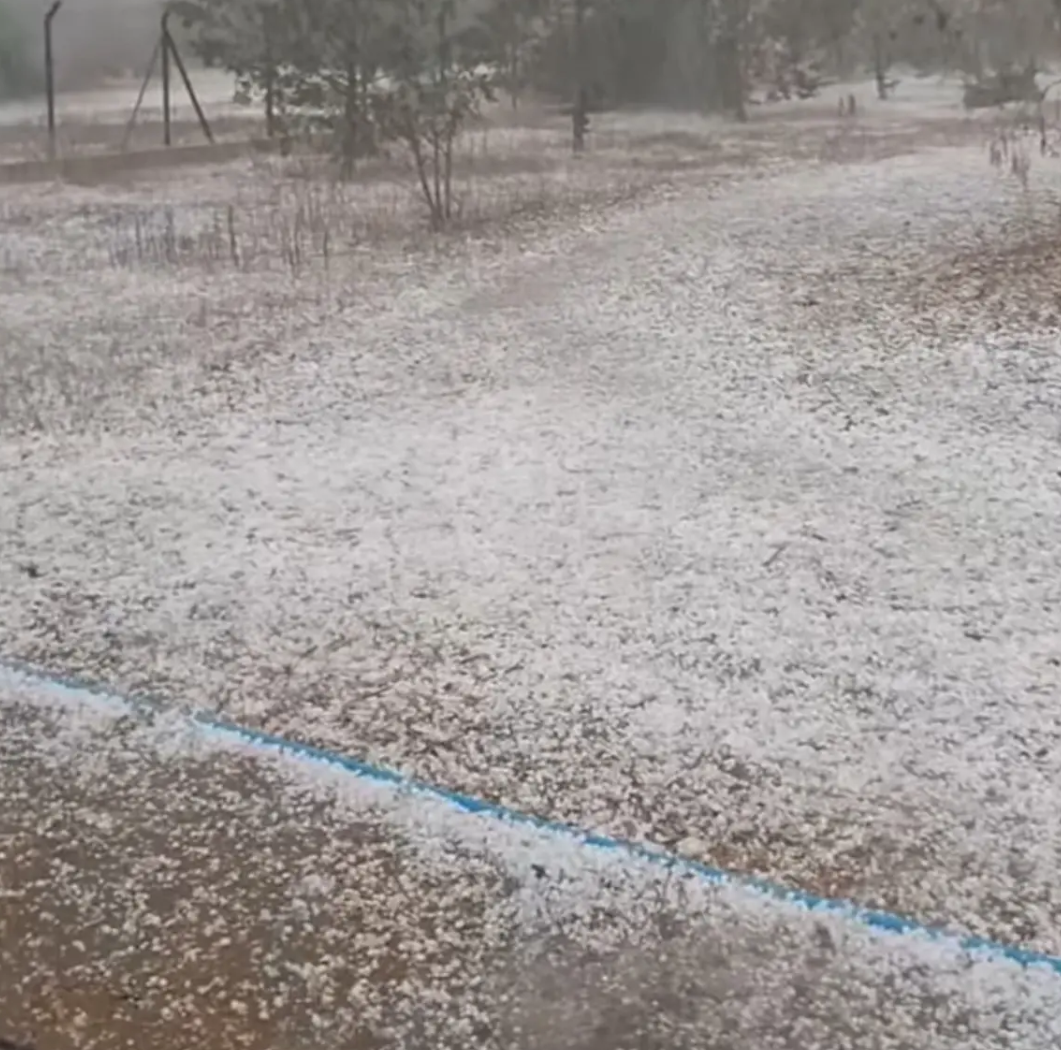 Zasiahnuté regióny hlásili aj výrazné krupobitie. Krúpy s priemerom približne 2 až 3 centimetre miestami pokryli zem v takom množstve, že znižovali viditeľnosť a komplikovali situáciu na cestách. Kombinácia silného dažďa a ľadových zŕn spôsobovala aj škody na poľnohospodárskych plodinách či menších konštrukciách.