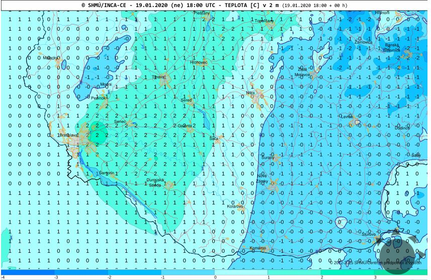 Od včerajšieho podvečera v oblasti západného Slovenska sneží a prší. Dážď sa vyskytuje najmä na závetrí Malých Karpát v oblasti Bratislavy, či Trnavy. V takmer celej západnej časti Podunajskej nížiny sa aj teraz teplota pohybuje nad bodom mrazu a prší, zatiaľ čo vo východnej časti Podunajskej nížiny mrzne a sneží. Podunajská nížina je tak rozdelená na dve polovice, pričom v tej východnej časti sneží.