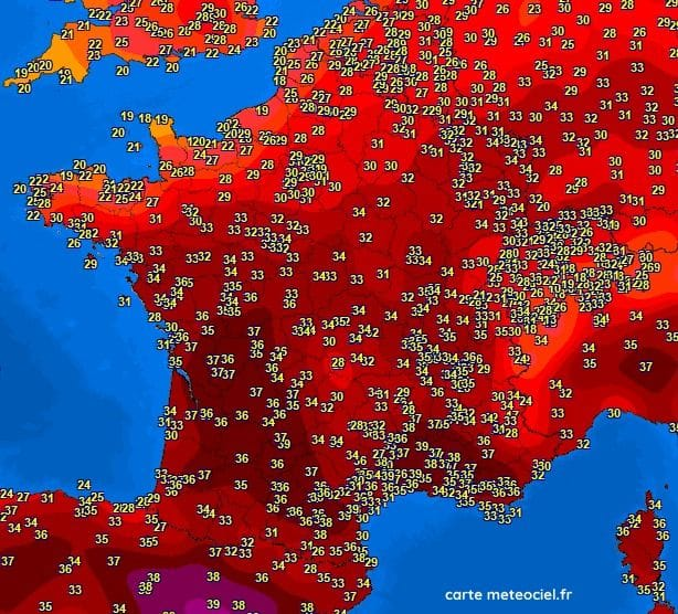 Na niektorých miestach na juhu krajiny presiahla v nedeľu denná teplota +40 °C. Juh Francúzska pritom sužujú horúčavy už od piatka, v pondelok sa však rozšíria takmer do celej krajiny.