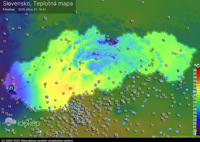 Na Slovensku sa počasie v podvečerných hodinách zmenilo a po horúcom dni dorazil nad naše územie studený front. Ten so sebou prináša zosilnený vietor, zrážky aj ochladenie.