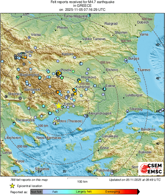 Sila zemetrasenia bola Európsko-stredomorským seizmologickým centrom odhadnutá na 4,7 a epicentrum sa nachádzalo v hĺbke 7 km asi 12 km západne od gréckeho mesta Xanthi.