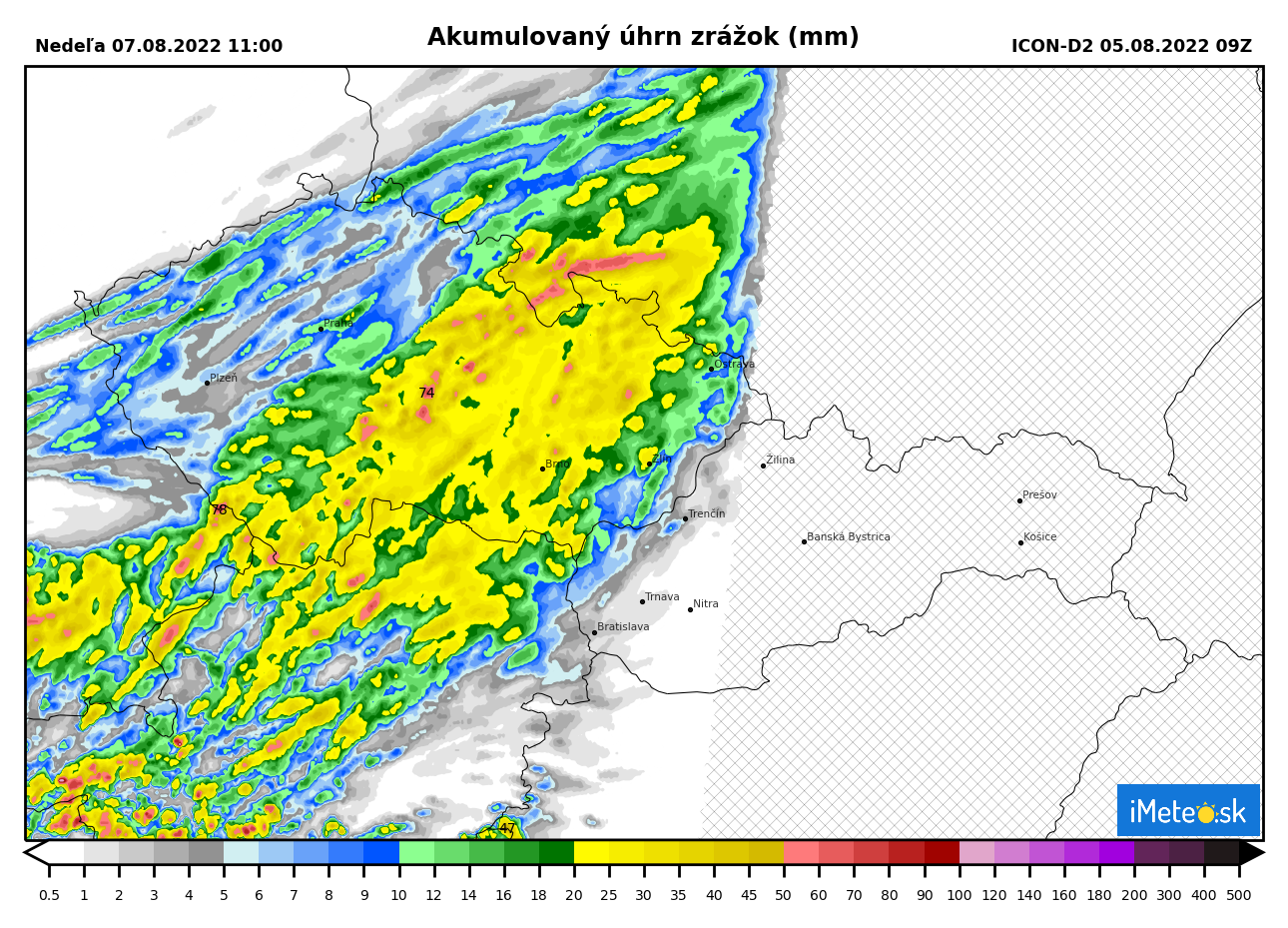 Numerické modely avizujú, že búrková činnosť sa v skorých ranných hodinách dostane až k nášmu územiu, kde sa búrky a súčasne aj zrážky budú rozpadať. Najviac zrážok sa očakáva na Záhorí a v krajných prihraničných oblastiach s Českom, kde však taktiež nejaké významnejšie zrážkové úhrny netreba očakávať.