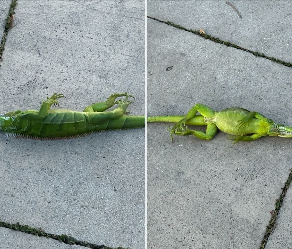 Nie je to klasické zamrznutie, ale ochranný mechanizmus: telo šetrí energiu, pohyb je obmedzený na minimum. Problém je, že mnohé leguány v teplejších dňoch odpočívajú vysoko v korunách stromov. Keď ich náhle zastihne chlad a svaly prestanú správne fungovať, jednoducho stratia úchop a spadnú na zem.