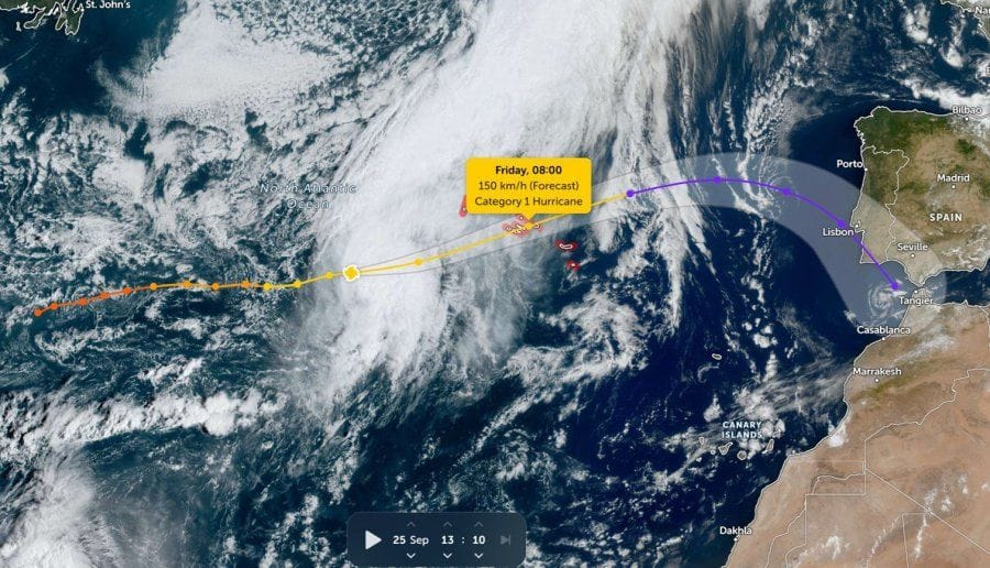 Aktuálne k 25. septembru sa hurikán nachádza približne 700 km západne od Azorských ostrovov a ostrovy by mal zasiahnuť dnes v noci (zo štvrtka na piatok) ako už spomínaný hurikán 1. kategórie.