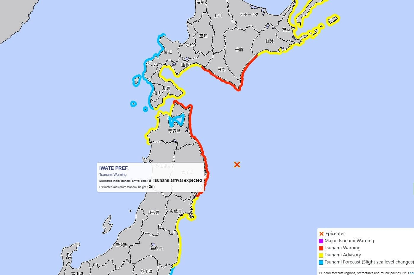 Japonská meteorologická agentúra vydala varovania pre časti Hokkaida, Iwate a Aomori. Ide o druhý najvyšší stupeň ohrozenia, ktorý sa vyhlasuje pri očakávaných vlnách vysokých jeden až tri metre. Úrady zdôrazňujú, že aj menšie vlny môžu mať ničivú silu a ohroziť životy.