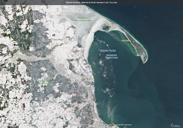 Fascinujúce satelitné zábery zo systému Sentinel-2 z 3. februára 2026 jasne odhaľujú, ako výnimočne zamrznutý je napríklad Pucký záliv, kde nízka hladina a mráz vytvorili scenériu ako z inej planéty, ktorú budeme aj naďalej pozorne sledovať, kým sa atmosférické podmienky nad Európou konečne nezmenia a voda sa nevráti späť na svoje pôvodné miesto.